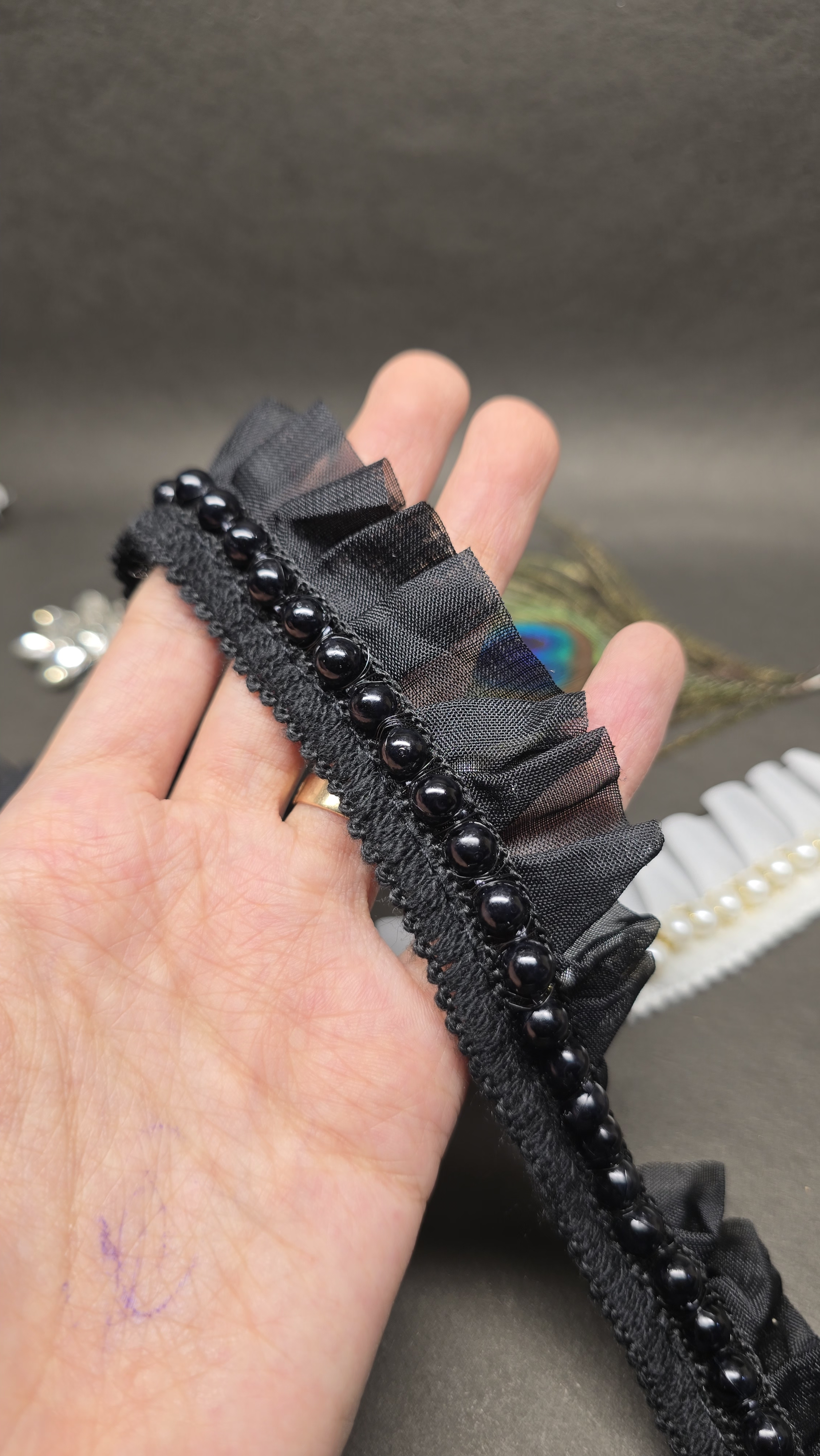 نوار پلیسه باریک مروارید دوزی